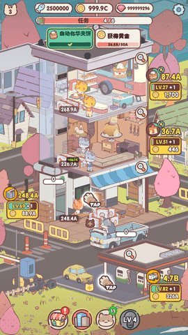 1、同时玩家还可以收集一些有助于商业收益的猫咪,将黄金投资在商业上,提高自己的收益。
