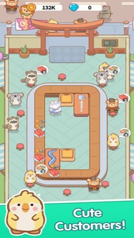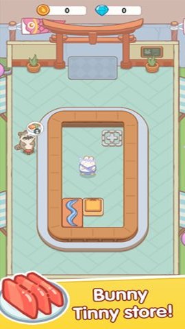 2、玩家将扮演兔子寿司店的经营者,通过不断更新和经营,打造最可爱、最美味的寿司店。