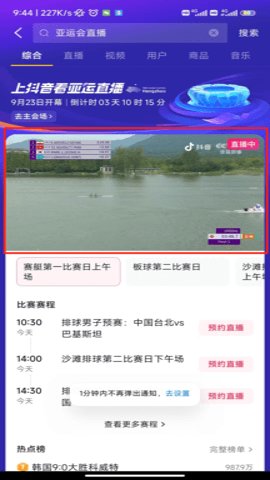 1、用户可以通过抖音观看亚运会的直播,了解各项比赛的情况和成绩。