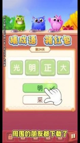 答题多金是一款备受欢迎的游戏,它的玩法非常简单,只需要根据系统给出的提示猜出正确的成语就可以获得红包奖励。这款游戏不仅可以提高玩家的语文水平,还能够增加玩家的文化知识。