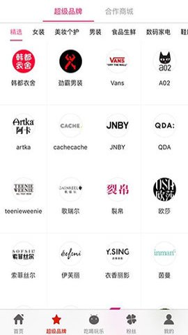 3、 另外城市酷选还提供了超级品牌板块,让你随时查看各大品牌的信息,购物更加优质。