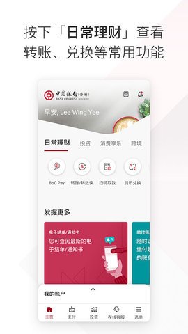4、bochk中银香港App采用了全新的版面设计,为用户带来耳目一新的感觉。