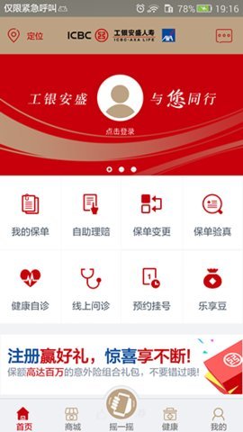 1、通过打开工银安盛App的首页,用户可以找到很多保险服务。