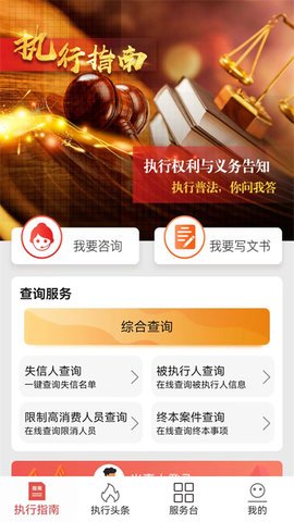2、 在查询服务方面,智慧执行提供了失信人查询、被执行人查询、限制高消费人员查询、终本案件查询四类专项查询以及综合查询功能。