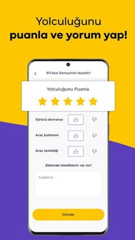 BiTaksi是一款公共出行应用,用户可以通过手机号或电子快速注册。这里所有的司机都是专业的,他们在线接单,为用户提供安全保险的出行服务。使用BiTaksi,用户可以轻松坐上豪车,享受舒适的乘车体验。