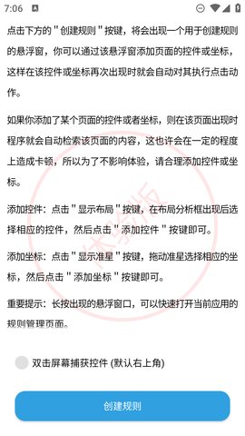 2、在使用过程中,我们需要根据具体情况选择是否开启或创建规则,并注意设置合适的点击次数和延迟点击。