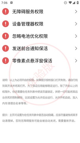 1、 为了实时监控页面的变化,TapClick酷安版需要依赖无障碍服务,并常驻后台,以确保不会被系统杀死。