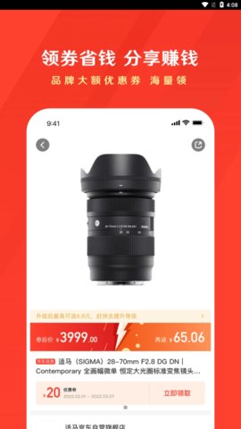 3、 这款应用程序汇聚了大量京东商家的优惠券,用户只需一键领券,即可在下单时享受优惠,购物后还能获得返利。