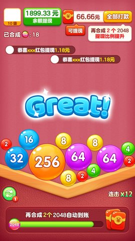 1、如果您喜欢数字合并游戏,并且想要在娱乐的同时赚取一些收益,那么全球达人红包版是您不容错过的游戏。