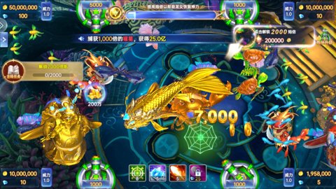 1、此外游戏还支持多人联机对战,玩家可以和其他玩家一起组队进行捕鱼比赛,互相竞争获取更多奖励。