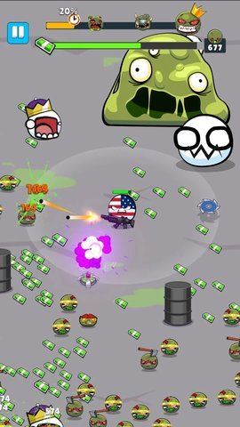 3、玩家可以选择和培养各种各样的波兰球式僵尸,体验多种玩法模式,包括合成、射击、爬塔等。