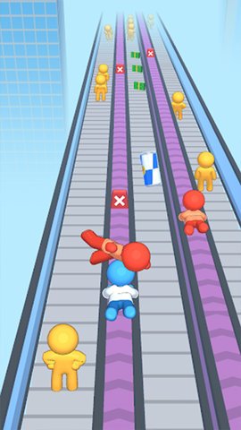 3、红色的卡通人物可以帮助玩家挡除障碍物,让电梯跑酷变得更加欢乐。