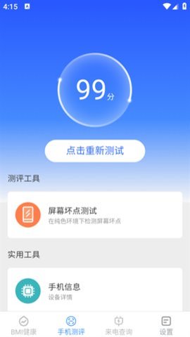 1、用户只需要点击手机测评,就能检测设备的健康状态,一键即可开始检测。