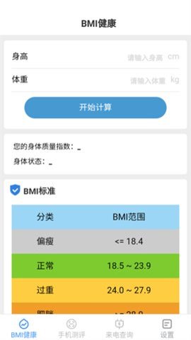3、用户只需要在本站下载并打开多宝手机工具,进入主页,输入身高和体重,就能查询到BMI健康数据。