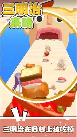 2、三明治来咯是一款非常有趣的休闲游戏,集合了跑酷和美食元素,让玩家在游戏中享受到美食和挑战的双重乐趣。