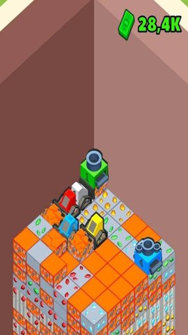 放置重机是一款休闲放置类游戏,玩家需要控制一台矿机挖掘不同地质层的矿石,并自动售卖获得金钱。游戏中有自动挖矿机与手动收割矿石机,多种颜色的矿石可以解锁以获得更高的卖价。