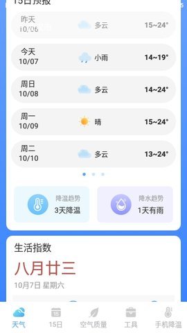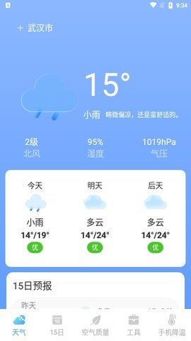 3、该应用支持未来15天内的天气变化,用户可以及时做好计划。