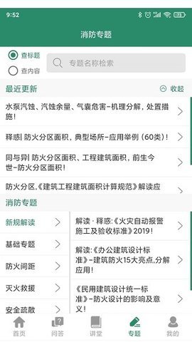 2、消防规范网、消防大讲堂、消防专题、消防问答、消防博客、消防头条等专业技术频道为用户提供了丰富的学习资源。