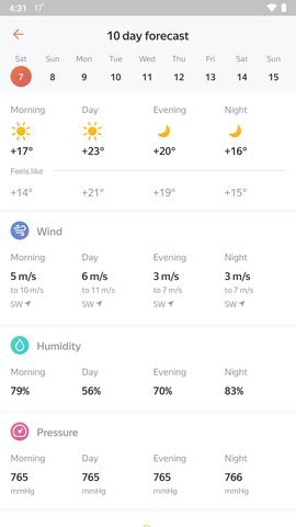 4、 Yandex天气是一款功能丰富、准确可靠的天气预测应用。