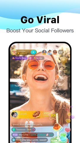 1、用户还可以结交新朋友,展示自己的才艺和颜值,并随时随地与其他用户互动,成为明日之星。