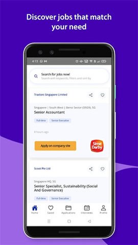 3、无论你处于职业生涯的哪个阶段,我们的求职应用程序都能帮助你展示最好的自己,从申请到面试。