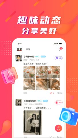 1、 陌微陌恋还拥有动态广场功能,用户可以在这里分享自己生活中的有趣瞬间。