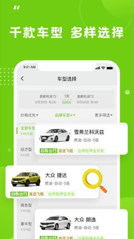 2、用户可以根据自己的需求选择适合的车型,无需办理繁琐手续,享受便捷快速的租车体验。