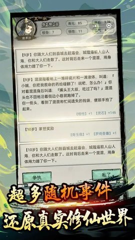 2、 在运气和悟性是非常重要的属性,它们影响着好坏事件的发生概率和突破境界的成功率。