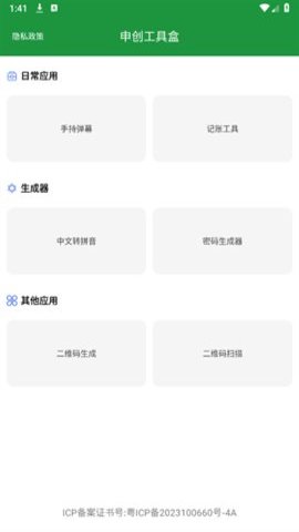 2、包括手持弹幕、记账工具、中文转拼音、密码生成器、生成、扫描等等。