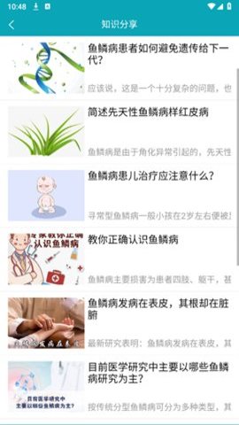 1、用户不仅可以在软件中和其他患者进行交流探讨,还可以获取最新的鱼鳞病医疗资讯。