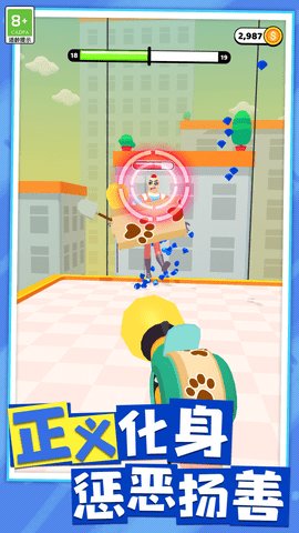 2、玩家扮演的是一位勇敢、善良、技艺高超的英雄,使用绷带枪击败眼前的罪犯,不会发生任何流血事件。