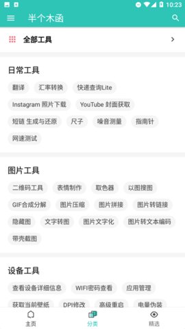 1、 半个木函提供了与日常、图片、设备、清理、转码等相关的60多种工具。