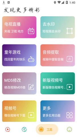 4、 实用大师电视版还提供了多种实用功能,电视音乐播放器、去水印、MD5修改等。