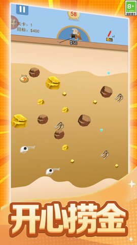 2、有60个完全独特的关卡,延续了经典的黄金矿工玩法,让人停不下来。