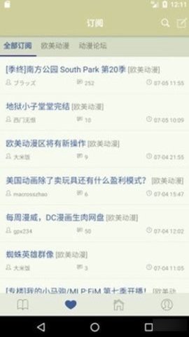 2、在底部的订阅栏目里,用户可以收看所有已经订阅论坛的综合内容,也可以根据论坛标签单独阅读。