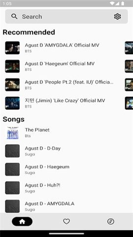 2、 这个应用包括了Bts所有成员(V、Jimin、Suga、Jungkook、Jin、J-Hope和RM)的歌曲,无论是在线还是离线,你都可以随时收听。