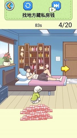 3、玩家需要在不同的场景中寻找私房钱,每个场景都有不同的挑战和难度,让玩家感受到游戏的乐趣和挑战性。