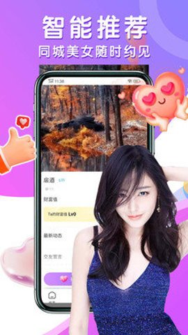 2、它集恋爱和社交于一身,优先推荐与用户有交友意愿的同城异性。