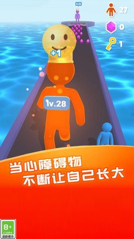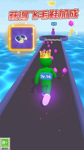 4、玩家可以控制自己的角色进行冲刺和闯关,收集金币和道具。