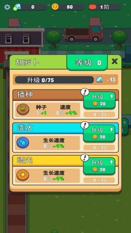 2、起初,玩家的背包容量有限,每次只能背一定数量的水果,需要多次跑到商店那里升级新的包,以帮助玩家快速赚钱。