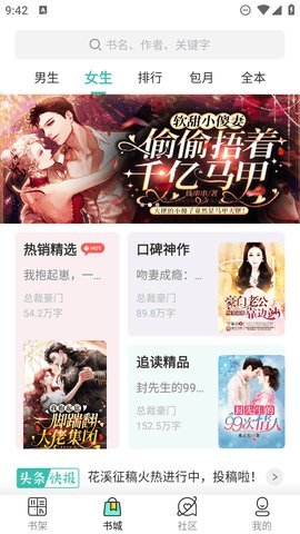2、它提供了全网小说和漫画资源,包含男频女频多种小说类型。