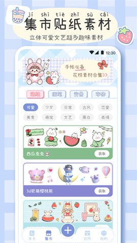 3、手帐画画板的素材库更新频繁,保证用户可以一直发掘新的元素,以丰富手帐内容。