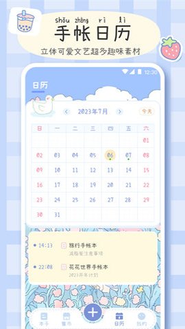 1、 手帐画画板内置了日历功能,用户可以根据快速浏览手帐记录,方便回顾过去的美好时光。