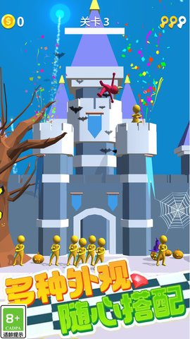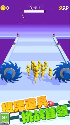 2、 我要做大哥是一款趣味跑酷游戏,带领你的团队穿越各种移动、旋转和膨胀的障碍。