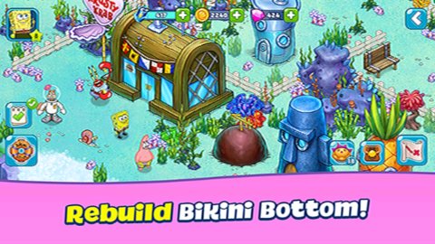 1、你需要收集资源,帮助恢复被水母果酱覆盖的地区,修复建筑、清理污染、种植植物等,逐渐重建海绵宝宝的世界,恢复昔日的辉煌。