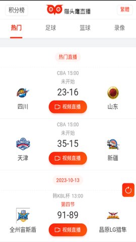 2、 如果你想观看体育赛事直播,猫头鹰直播是你的不二选择。