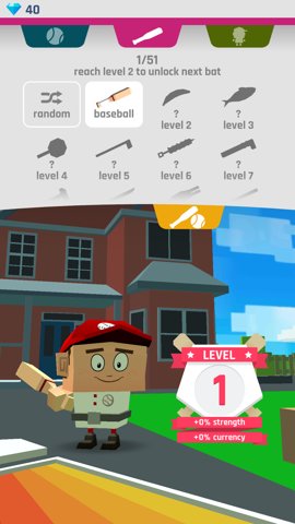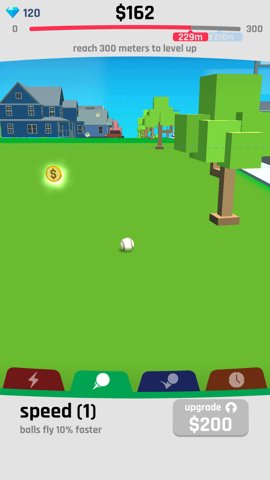 1、玩家需要选择合适的角度击打棒球并让它在空中飞一会儿,升级力量和球跳跃的力量等元素来获得完美的距离。