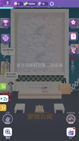 2、游戏店铺一共拥有三层楼,随着店铺装饰的升级,将逐渐开启新的楼层,提升店铺等级也能吸引更多新顾客。