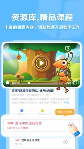 3、 逻辑狗家长端app还与国际化教育家园共育云课堂合作,为家长们提供更多的教育内容。