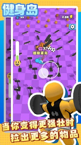 1、通过不断提高自己的力量,你可以获得更多的资源,进一步发展你的健身岛。